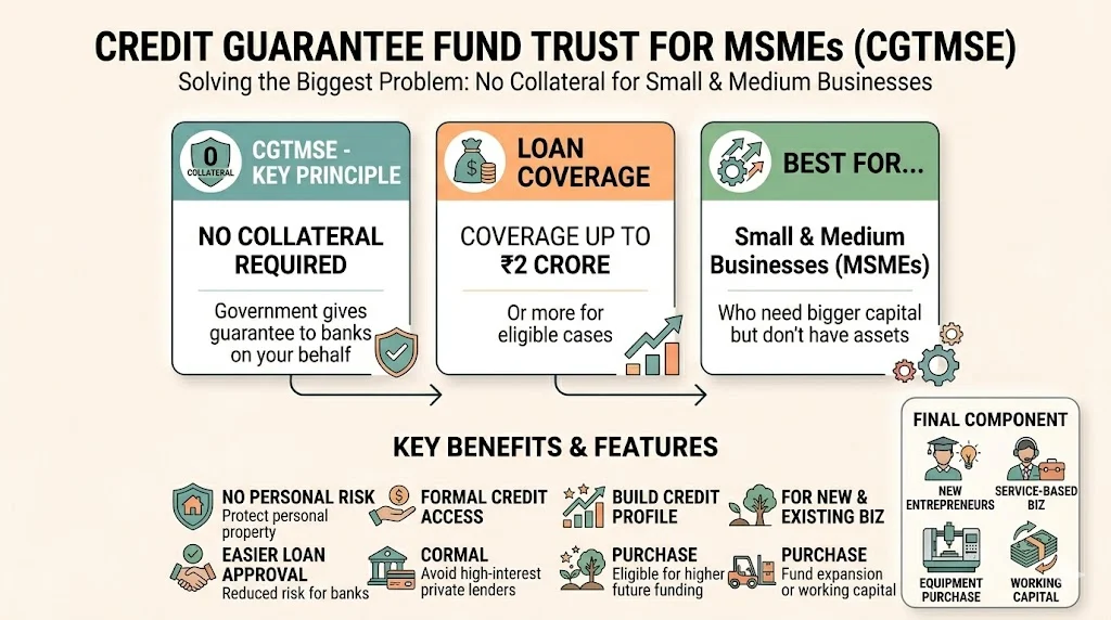 The CGTMSE scheme is mainly designed for small and medium businesses that struggle to provide security or property as collateral. It is especially useful for first-time entrepreneurs, service-based businesses, and manufacturing units that need funding to expand operations, purchase equipment, or manage working capital. Even existing MSMEs looking to scale up can benefit from this scheme without risking personal assets.