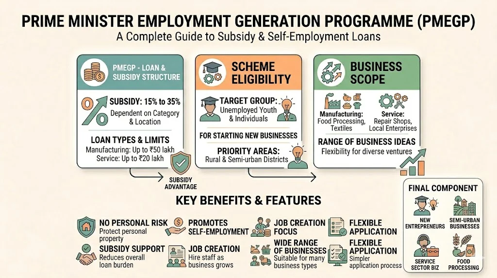 One of the biggest benefits is the subsidy support, which reduces the overall loan burden. Depending on your category and location, you can get a higher subsidy, making it easier to manage repayments. The scheme also encourages self-employment, helping people create their own income source instead of relying on jobs.